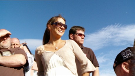 Former Miss Ireland Natasha Nic Garbheith cheers on husband PJ McDermott during the rally.