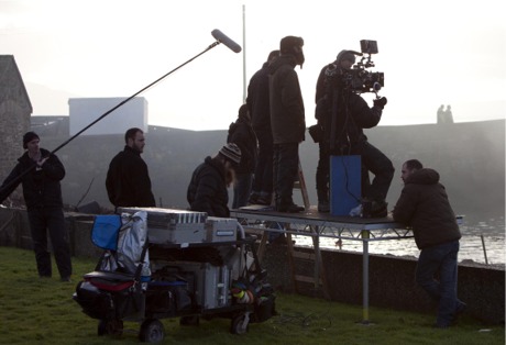 The 'Grabbers' film crew on location at Moville pier.