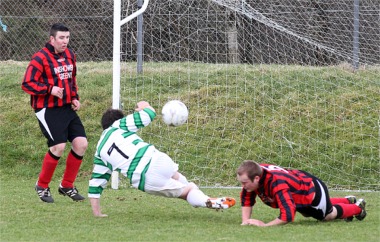 After Kevin McDaid’s corner was only partially cleared Alan Fletcher fired home a stunning half-volley from twenty yards to give Cockhill a deserved lead.