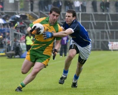St Eunan’s midfielder Kevin Rafferty, who improved as the game wore on, opened the second half scoring with an excellent score from the right wing and although Gearoid McKiernan, one of the few Cavan players to compete well over the 70 minutes, hit back with a point moments later, Donegal dominated the second period more than they had the first.