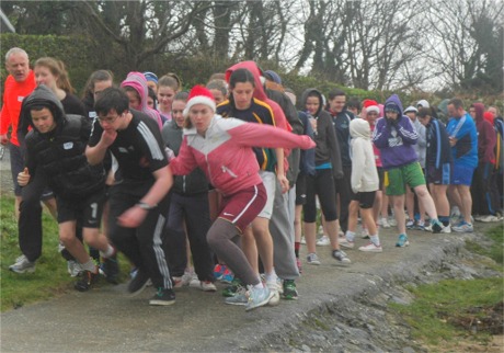 Moville Community College pupils, past pupils and staff, brave the elements for the school's Jingle Bells Race 2013.