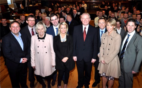 Pictured at the Sinn Féin local elections selection convention in Buncrana, from left, Pádraig MacLochlainn TD, Albert Doherty, Carmel Doherty, Cllr Jack Murray, Sabrina Friel, Deputy First Minister Martin McGuinness, Cllr Ciaran McLaughlin, Majella McLaughlin, and Cllr Matt Carthy Sinn Féin EU candidate.