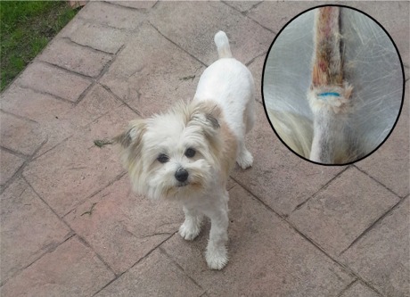 The one-year old terrier cross has now lost two-thirds of her tail but has happily made a full recovery.