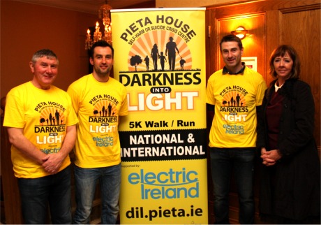Pictured at the launch of Donegal Darkness into Light are, from left, Martin McHugh, Karl Lacey, Rory Gallagher and Pieta House founder Joan Freeman. (Photo: Alice Kelly)
