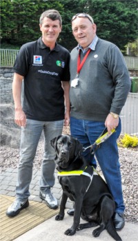 Laurence McDermott from Killea and his guide dog Scamp meet Roy Keane at the launch of Guide Dog Day to be held on May 1.