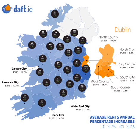 The average monthly rent in the county now stands at €519, according to the latest figures from Daft.ie,