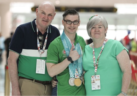 McGee and Mick Quinlivan, shows off his 2 gold and 5