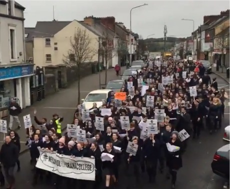 Over 1,000 people attended a March in Buncrana on Thursday, January 30, in support of the campaign for a new school for Crana College.