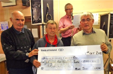 a cheque to Eamon from the Donegal Cancer Bus back