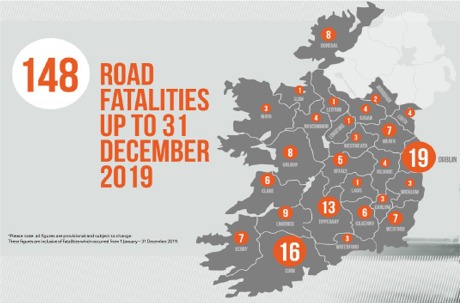 Up to 1pm on the 31 December 2019 a total of 148 people died on Ireland’s roads as a result of 137 fatal crashes, compared to 142 lives lost in 135 fatal crashes in 2018. The figures were published by the Road Safety Authority (RSA) on Tuesday 31 December 2019, following an analysis of provisional fatal collision reports by An Garda Síochána.