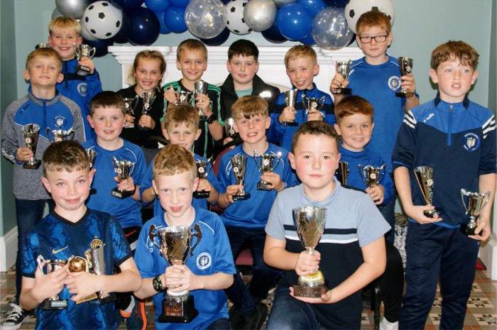 Under 11B team showing off their trophies. |