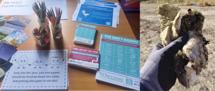 The 'Think Before You Flush' campaign, operated by Clean Coasts in partnership with Uisce Éireann, emphasises the importance of appropriate flushing behaviour and disposal of items including wipes and other sanitary products in the bin. Only the 3 Ps, pee, poo and paper should be flushed down the toilet.