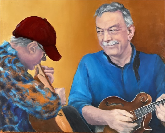 A portrait of love, music, and family in the face of dementia. Artist and family carer Mary Toland depicts her husband Dermot and his brother Patsy playing music together.