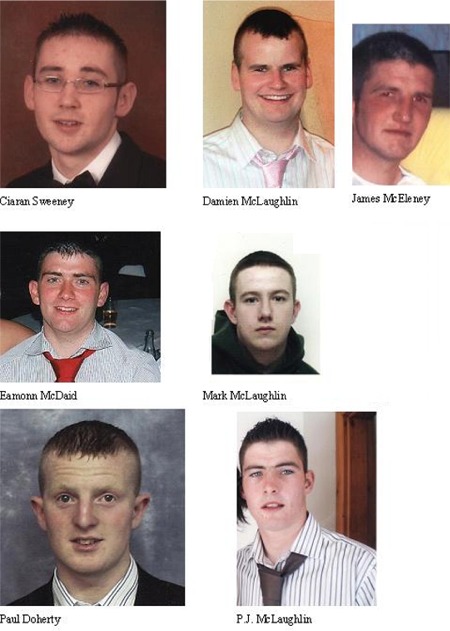 LIKE nearly every young man in Ireland on Sunday evening, pals Mark McLaughlin, Paul Doherty, Ciaran Sweeney, P.J. McLaughlin, James McEleney, Eamonn McDaid and Damien McLaughlin, went out to the pub to watch the World Cup final.