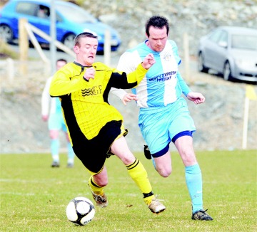 The home side took advantage of the wind to pin Lagan back for much of the first-half. Glengad forward Alan Orr fired the first of a barrage of United efforts wide after eight minutes following good play by strike partner, Terence Doherty.