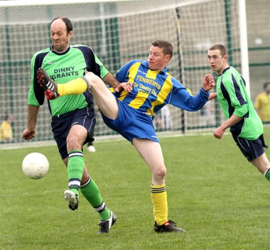 A BUSY Maginn Park was the venue for this crunch relegation play off between Aileach and Illies. The game was too close to predict with both teams recording victories over each other earlier in the season and finishing up on an identical 19 points, usually enough to stay up but not this season. Illies came into the match off an impressive run which saw them claim ten points from four games and were hoping to keep their run of form going. For Aileach their lack of goals has proved to be their downfall this season netting only 20 times in 16 league games.
