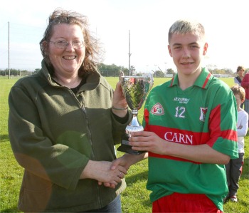 The Cup was presented to winning Captain Mathew McLaughlin by Breege Gallagher. This Carn team have added the U14 Division county title to the county title they won at U13 level last year. Their reward will be a place in Division 1 competition at U15 next year, and they will also play in Division 1 at U16 in 2012. But on the evidence of these past two seasons, Carn will be more than capable of holding their own at the higher grade.