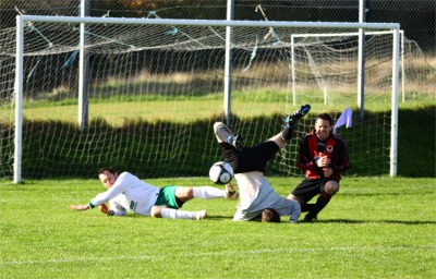 In a rare attack, Redcastle wideman Damien Coyle forced a corner following Andy Porter’s deep cross. In his first significant involvement of the game home forward, Brian Tracey was sythed down by Liam Hirrell, who was lucky to escape without a yellow card.