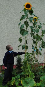 Fourth class have now set a challenge and would like to know if any other school has grown a taller sunflower.