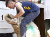 Smiles in the sun at Burt from Gavin McLaughlin, 8 months, from Priestown, Carn. Some of the Inishowen Fianna Fáil team flank Tanaiste Mary Coughlan on her weekend visit to the Sheep Shearing festival in Burt. Graeme Davidson competes in the junior category of sheep shearing championships in sweltering Burt heat. Shane McDonagh relieves this sheep of her heavy wool coat during the sheep shearing competitions. This sheep gets it in the neck from expert sheep shearer Eugene Cloonan. The McFeeley family from the Isle of Doagh including Martin and Fiona and children Shane, 3, and Lauryn, 2. Greg and Claire McDaid from Buncrana are joined in Burt by their children Darrien, 3, and Oran, 1. Also pictured is their little pal, Ava McLaughlin, 3. Enjoying the sheep shearing festival in a scorching Burt on Bank Holiday Sunday were Shaun Bradley, Carn, and Kathleen Gallan, Killygordan. Peter and Patricia McLaughlin, Carndonagh, with son Jamie, 2. Moville ace mechanic, Noel Doherty, demonstrates his tractor building skills at the Burt show.