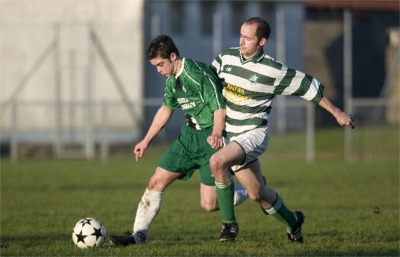 The home side were not to be denied at the start of the second half when, from Damien Grant’s deep free to the back post Brendan Devlin headed back across the six yard box and Harkin controlled the ball past the goalkeeper then forced it home with a couple of Moville defenders hanging off him.