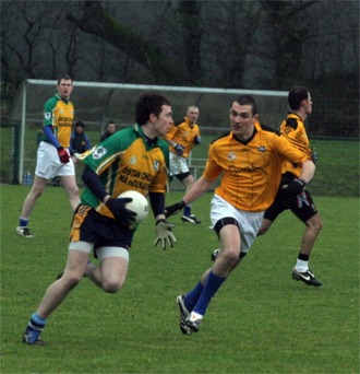 John Paul Gallagher of Cloughaneely, who had an industrious hour at the office, rolled the ball home under the body of Declan O'Donnell for the game’s first goal on 31 minutes and barely 30 seconds later the net was bulging again. This time, it was Fanad Gaels’ Michael Sweeney who profited from a gaping hole in the Inishowen rearguard to blast home from 20 metres.