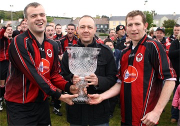 Clonmany Shamrocks...1 Jason Devlin 49 Redcastle United...1 Brian Tracey 43 (pen) by Michael Stamp, Inishowen Independent, at Clonmany WITH THE Jackie Crossan Premier League title at stake Sunday was always going to be a nervy day for Redcastle. Going into the one of the last games of the season needing only a draw to win the league sounds familiar, except unlike Manchester United Redcastle did not come to play for a draw. Playing for a point is a dangerous gamble and Bryan Bell to his credit sent his team out for a victory to win the title in style. With Clonmany being so difficult to beat on home turf, Redcastle were depending on experienced players such as Gerard Crossan, Jimmy Gallagher and Martin Farren to bring them across the finishing line. Clonmany played an attacking team knowing they needed a win to keep their hopes of forcing a playoff alive, Paul McLaughlin, Stephen McLaughlin and Jason Devlin being their main hopes. Their rivalry may be a modern one, but it’s no less intense for that. These sides have been met many times in league and cup deciders. |