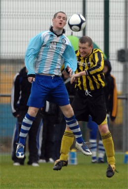 Raymond Buchan’s clever back heel created a good opening for Grant in the 9th minute, but Martin Kelly in the Glengad goal was down smartly to grab his stinging left-foot drive.