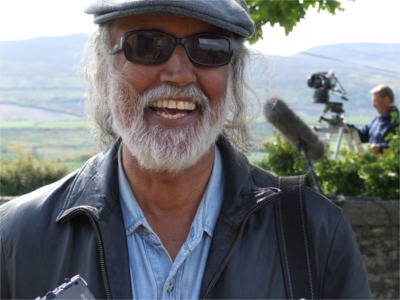 Film director Vic Sarin takes a break from filming at the old schoolhouse in Cooley, Moville.