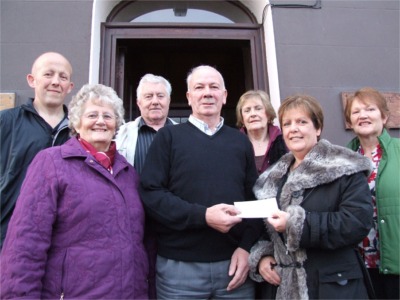 Foyle Beekeepers' Association hand over a cheque for €835 to Moville Cancer Support Group. Pictured are from left, PJ Costello, Anne Quigley, John Quigley, Willie McMullan, Kay O'Toole, Roisin Conlon and Maeve Clenaghan.