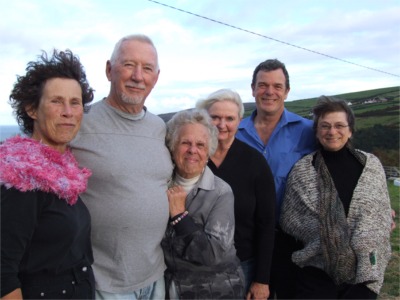 Boston artist Mike Dowling (blue shirt) brings his Medicine Wheel artists' retreat to Kinagoe Bay. From left are Mary Begin, Dan McCole, Mike's mum Mary Dowling, Ann Doyle and Betty Glick.