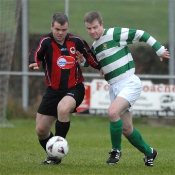 afterwards making a good save from a Finucane header. Redcastle also had chances with Mickey Feeney heading over from an Eddie McIntyre cross and generally pressing the away defence. On 19 minutes this pressure paid off when Redcastle took the lead. Eamon Reddin played through Eddie McIntyre, the two-goal hero from the previous round against Manulla of Mayo, who kept his nerve and slotted home. Redcastle then entered a period of dominance and almost doubled their lead when Charlie McCormack was a hair’s breadth away from converting Mickey Feeney’s cross. The away side were still dangerous however, and they equalised six minutes before the interval. Patrick Mitchell sent a long ball down the right flank to Patrick Maloney who crossed to Irish junior international Keith Harnett who managed to stab the ball home from close distance. |
