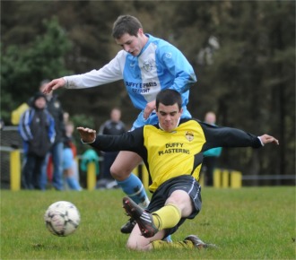 nothing powder-puff about the Lagan attack. As he had threatened to do in the first half, Kelly scored with a curling free in the 64th minute, beating McLaughlin at his near post. Glengad’s last roll of the dice was to throw on Paul McDermott on the 65th minute and an inspired substitution it would prove to be. The home team put the Lagan defence under a brief period of pressure after the third goal but the Donegal League side’s defenders were in an uncompromising mood. It took a defender to unlock the Lagan rearguard. With ten minutes to go Patrick McDermott played a one two with Stephen McLaughlin on the edge of the |