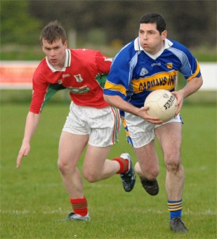 up until the 54th minute. Robert McCartney opened the scoring for Carn in the third minute before both Barry McElhinney and Raymond McLaughlin missed goal chances for Carn and Naomh Pádraig respectively before the seventh minute mark. Two minutes later John McLaughlin pointed for what would be Naomh Pádraig’s only score of the opening period. Dara McLaughlin battled hard in the tenth minute to earn a free that McCartney pointed to put Carn in the lead. The two Carn corner forwards were showing well and proving the biggest threat of the first half. Dara McLaughlin laid the ball off to the oncoming Mark Canny and he increased the home side’s lead further. With 17 minutes on the clock, the ball fell to Dara McLaughlin but when his bundled shot was saved by Gerard Harkin, |