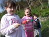 Faith O'Donnell, Megan Merrick and Dominic O'Donnell have an egg-and-spoon race.