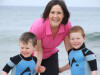 Catherine Gillespie from Belfast enjoys the Culdaff surf with sons Odhran, 4, and Cormac, 6.