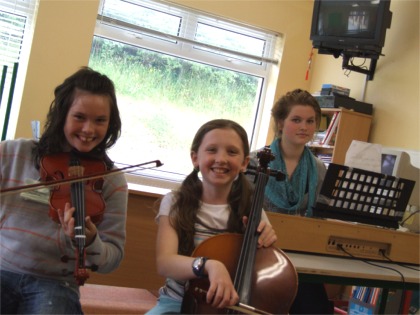 Left to right, Derval Guckian, 11, Derry, Amee Grant, 11, Tooban and Phoebe Carruthers, 14, Dublin, at one of the workshops. Back row from left, Valerie Klatt, Frankfurt and Mary Hyland, Sligo. Front, Francesca Bertolia, Inch, Ruairi Bradley, Tooban and Jack Shallow, Tooban. Duet...Aoibheann and Marie Claire, Buncrana get some musical tips. From left, Pauline Hughes, Derry, Joan Deehan, Derry and Sheila Deehan, Belfast, enjoy the lunchtime concert at the Fowler Hall. From left, Encore artistic director, Jane Hughes, Fahan and music teachers Aingeala De Burca, Dublin, Margaret Keys, Derry and Geoff Bowles, Buncrana.