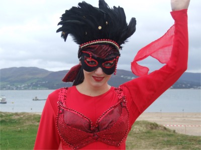 Lisa Becker from Clonmany, a member of the Inishowen Carnival Group, prepares to join the 400th Anniversary parade.