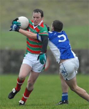 It wasn’t until the 26th minute that Cloughaneely raised a white flag. Eugene Maguire won a free close to goals and Denis Boyle duly converted. Burt were still defending in numbers, but they weren’t alert enough and a quick free was passed to Kevin Mulhern for the right half back to point two minutes before the break.